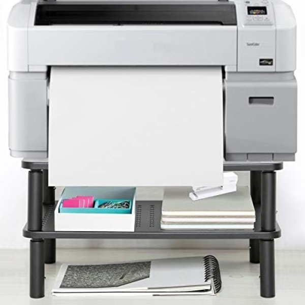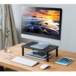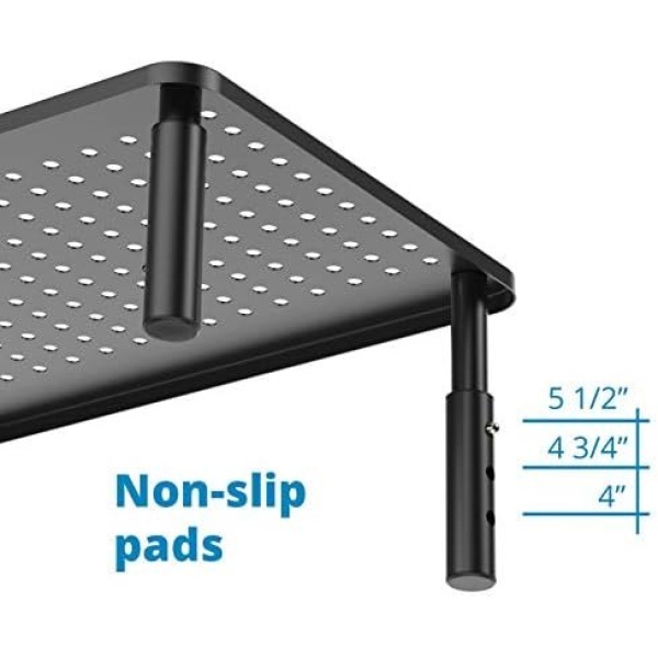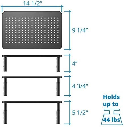 SLEEK, FASHIONABLE, ELEGANT DESIGN makes this monitor riser a very nice accessory for your desk and office. Make of durable black steel. It’s smooth and feels great with vented top surface. Holds up to 44 pounds including most monitors.