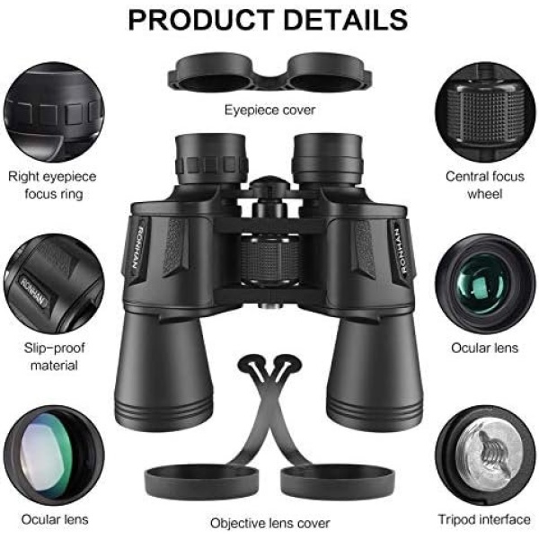 [Versatile to Use]-These binoculars are designed for birding watching, hiking, hunting, climbing, trip, football basketball, or any Sports competition, concert. And it is also an ideal Christmas gift for adults, kids, children. Tip:These binoculars have low-light night vision and can be used at night, but not in complete darkness.