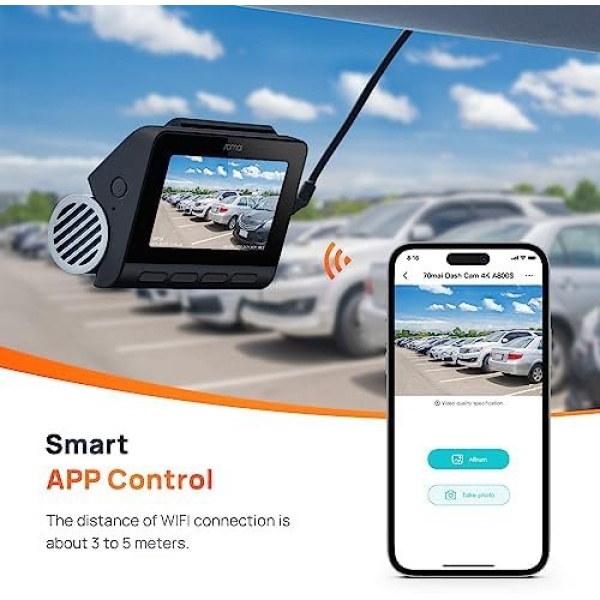 【In-app Control & Footage Sharing】Sharing is not a problem anymore with the dash cam 4K A800S, the 70mai App supports both iOS & Android systems, allowing you to view and download videos via Wi-Fi hotspot connection. In case of an accident, you can simply share the footage with your insurance provider for a more efficient claims process. Also, this function enables you to achieve continuous OTA updates by automatically fixing bugs and updating software