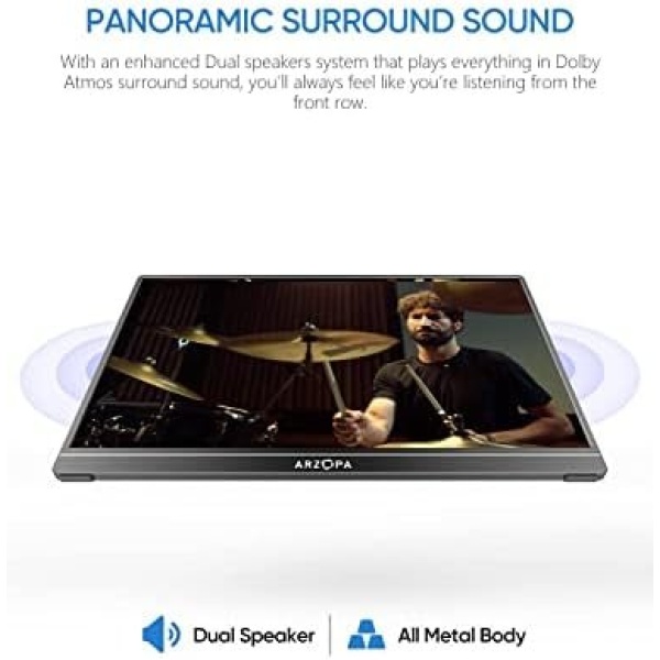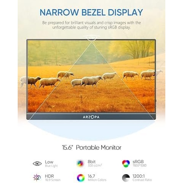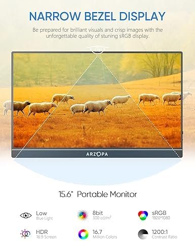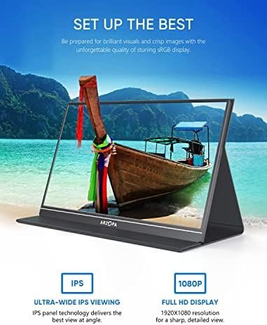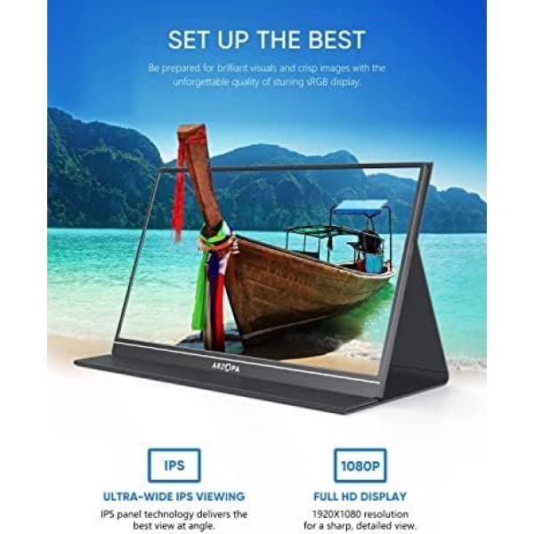 ARZOPA Portable Monitor, 15.6” 1080P FHD Laptop Monitor USB C HDMI Computer