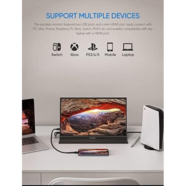 [Plug and Play] There is no need of app and drivers, you only need one USB-C cable toset the portable monitor for its video signal and power to deliver a full HD resolutionviewing. (Phones need full-featured USB port).