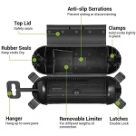 【EASY TO USE】 No tools or installation required; place the extension cord properly; slide the limiter to keep cords securely connected; lock the top lid and 4 latches for seal; hanging to save space; ideal for holiday lights, string lights, pool pumps and garden tools etc