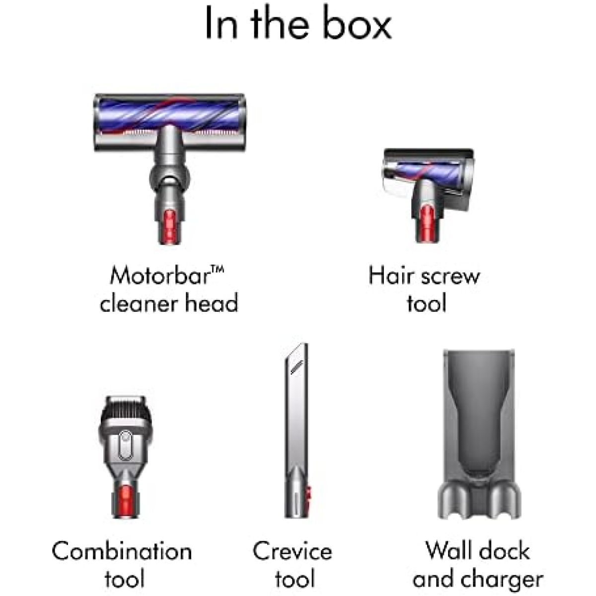 The Dyson V8 cordless vacuum cleaner is engineered with the power, versatility, tools and run time to clean homes with pets. Dyson’s de-tangling Motorbar™ cleaner head deep cleans carpets and hard floors with hair removal vanes that clear long hair and pet hair from the brush bar. The innovative Hair screw tool with a conical brush bar is perfect for cleaning upholstery and pet beds. The Dyson V8 has advanced, whole-machine filtration that captures pet dander and fine dust, expelling cleaner air. Thanks to the cordless format, it also transforms into a handheld vacuum with one click so you can clean up high, down low and everywhere in-between. Comes with a 2-year warranty and lifetime Dyson support.