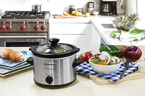Elite Gourmet MST-250XS Electric Slow Cooker Ceramic Pot, Adjustable Temp, Entrees, Sauces, Stews & Dips, Dishwasher Safe Glass Lid & Crock, 1.5 Quart, Stainless Steel