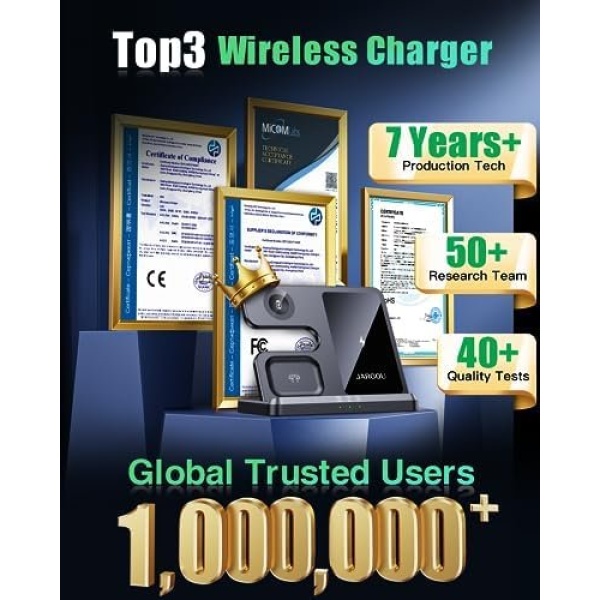 JARGOU 3 in 1 Charging Station for Apple Wireless Charger for iPhone 15 14 13 12