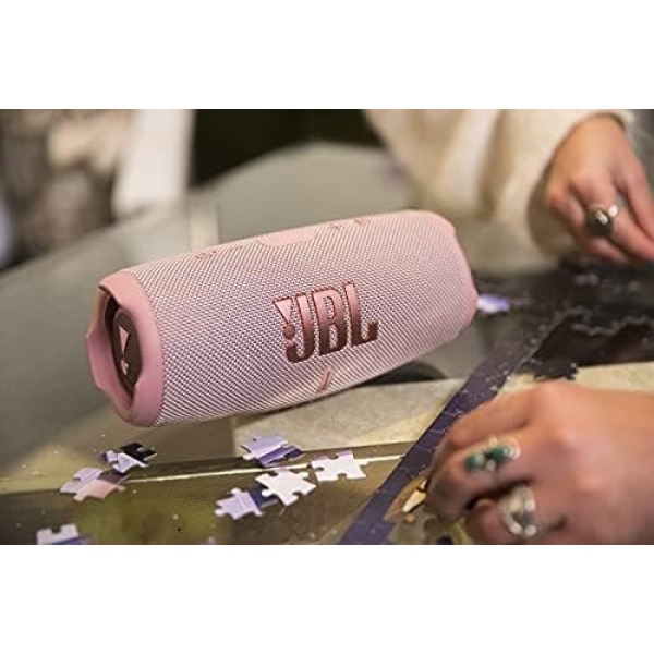 Take the party with you no matter what the weather. The JBL Charge 5 speaker delivers bold JBL Original Pro Sound, with its optimized long excursion driver, separate tweeter and dual pumping JBL bass radiators. Up to 20 hours of playtime and a handy powerbank to keep your devices charged to keep the party going all night. Rain? Spilled drinks? Beach sand? The IP67 waterproof and dustproof Charge 5 survives whatever comes its way. Thanks to PartyBoost, you can connect multiple JBL PartyBoost-enabled speakers for a sound big enough for any crowd. With all-new colors inspired by the latest street fashion trends, it looks as great as it sounds.
