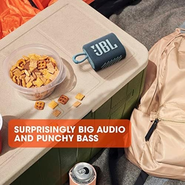 JBL Go 3 features bold styling and rich JBL Pro Sound. With its new eye-catching edgy design, colorful fabrics and expressive details this a must-have accessory for your next outing. Your tunes will lift you up with JBL Pro Sound, it’s IP67 waterproof and dustproof so you can keep listening rain or shine, and with its integrated loop, you can carry it anywhere. Go 3 comes in completely new shades and color combinations inspired by current street fashion. JBL Go 3 looks as vivid as it sounds.