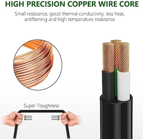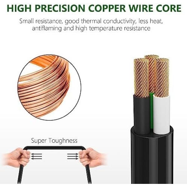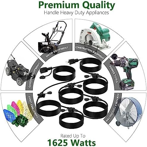 The Extension Cord with a standard NEMA 5-15P grounded power plug. SJTW Weatherproof Wire,16 AWG heavy duty cable allow you to power multiple appliances at the same time.