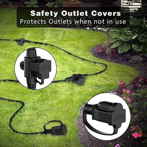 Safety Outlet Covers – The 6 grounded outlets extension cord is rated for use in wet locations. Each outlet plug comes with a safety cover which will protect against rain, snow, and dust.