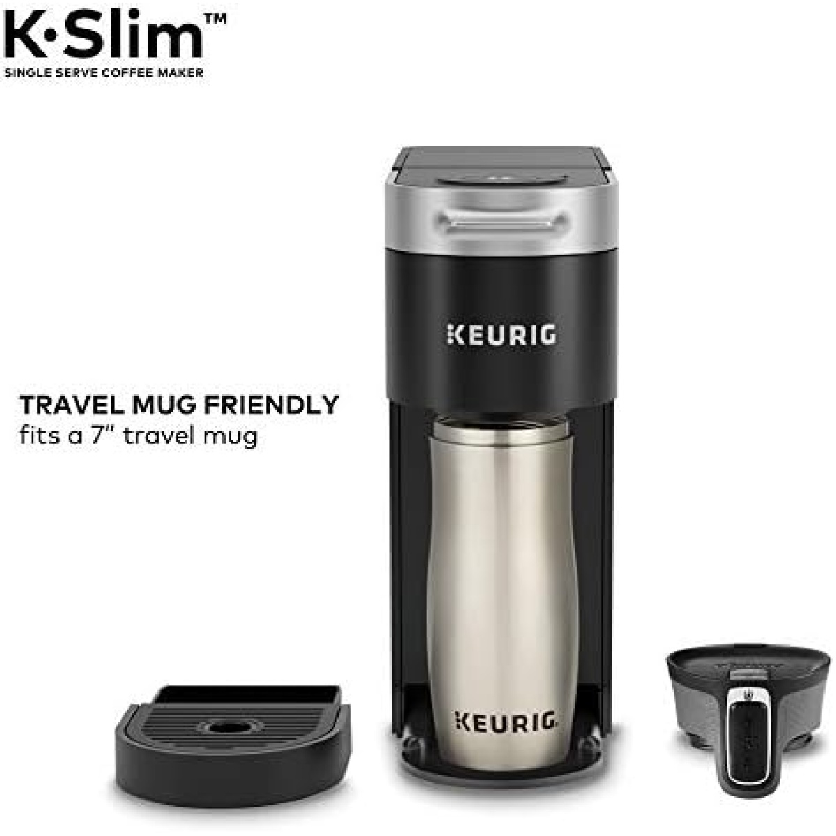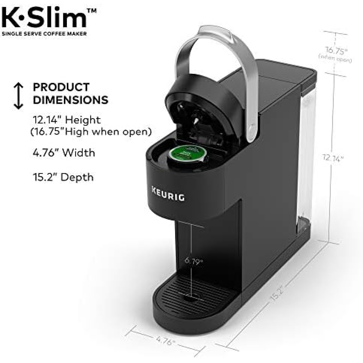 Enjoy ease and great taste in little space with the Keurig® K-Slim® single serve coffee maker. At just 5” wide, the K-Slim® coffee maker fits neatly on your countertop, making it the perfect choice for when space-saving and simplicity are important. The K-Slim® coffee maker brings together the performance and simplicity that Keurig® is known for, in a slim and sleek design. You also get the convenience you desire with the capacity to brew up to four 8 oz. cups before refilling the 46 oz. removable water reservoir, and the ability to enjoy a fast and fresh-brewed 8, 10, or 12 oz. cup at the push of a button. Choose from hundreds of flavorful K-Cup® pod varieties of coffee, tea, cocoa, and more. With the K-Slim® coffee maker, your delicious morning cup or midday pick-me-up is always ready in minutes, and you never have to sacrifice countertop space for taste again.
