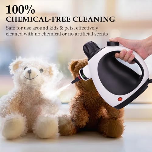 🌱Natural & Safe: Steam cleaner for home 100% Natural with no harmful fumes or residue. Includes a safety lock on the handle and a safety cap for added peace of mind for your safety. It can be used with confidence around children and pets.