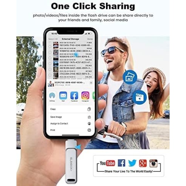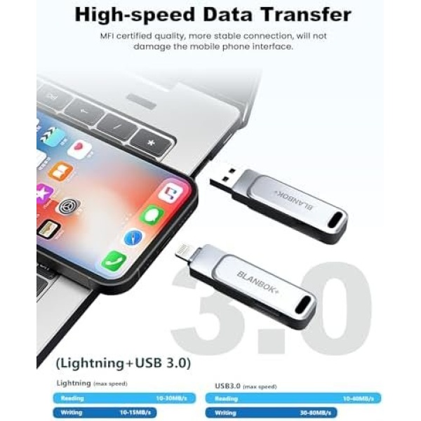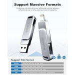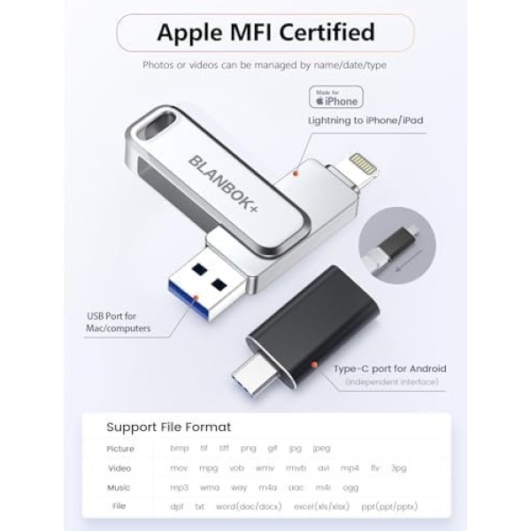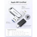 MFi Certified 128GB Flash Drive for iPhone/USB/USB C/,3-in-1 USB Stick