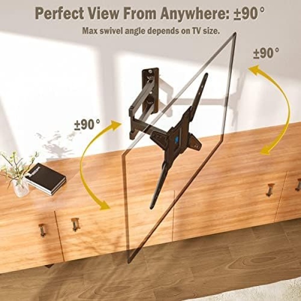 Full Motion & Space Saving: TV bracket tilts TV up 5° and down 15°, say goodbye to screen glare. Swivels TV left or right according to your seats position. Pull out to 16.7” and retract back to 2.7”, making your TV alive to move. This full motion TV mount also enables you to mount your TV in the corner.