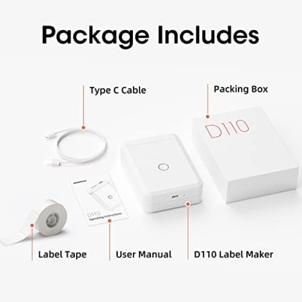 Rechargeable and Inkless ♔ Direct thermal printing without ink, toner or ribbon, lower cost compared with inkjet printers. Equipped with 203DPI resolution print head and bluetooth, can personalize and creating labels easily from mobile devices, help you get your life and business orderly