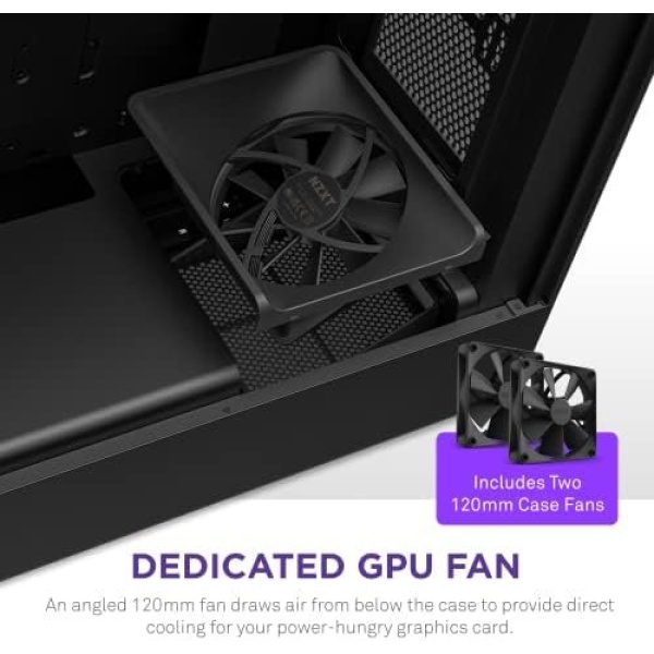 DEDICATED GPU FAN: An angled 120mm fan draws air from below the case to provide direct cooling for your power-hungry graphics card.