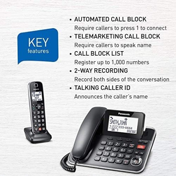 Store up to 1000 numbers in the Call Block List; Talking Caller ID announces caller’s name between rings using text-to-speech technology so you hear who is calling