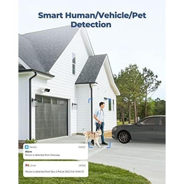 SMART PERSON/VEHICLE/PET DETECTION: Say goodbye to the unwanted alarms triggered by moving branches or flying bugs. The camera identifies true threats by cutting-edge detection algorithms, giving you the utmost peace and relief.