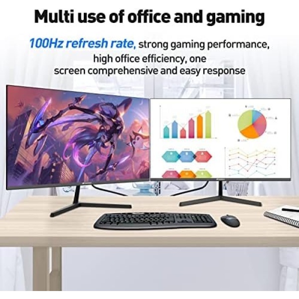 Ergonomic Design and Eye Protection-SANSUI monitor’s adjustable stand lets you tilt the screen up to 5 degrees forward and 15 degrees backward to find the perfect ergonomic viewing angle. It supports VESA stand 100mm with four M4 x 8 mm screws for easy installation. Monitor also features anti-blue light, anti-glare, and anti-flicker technologies that protect your eyes during prolonged use.