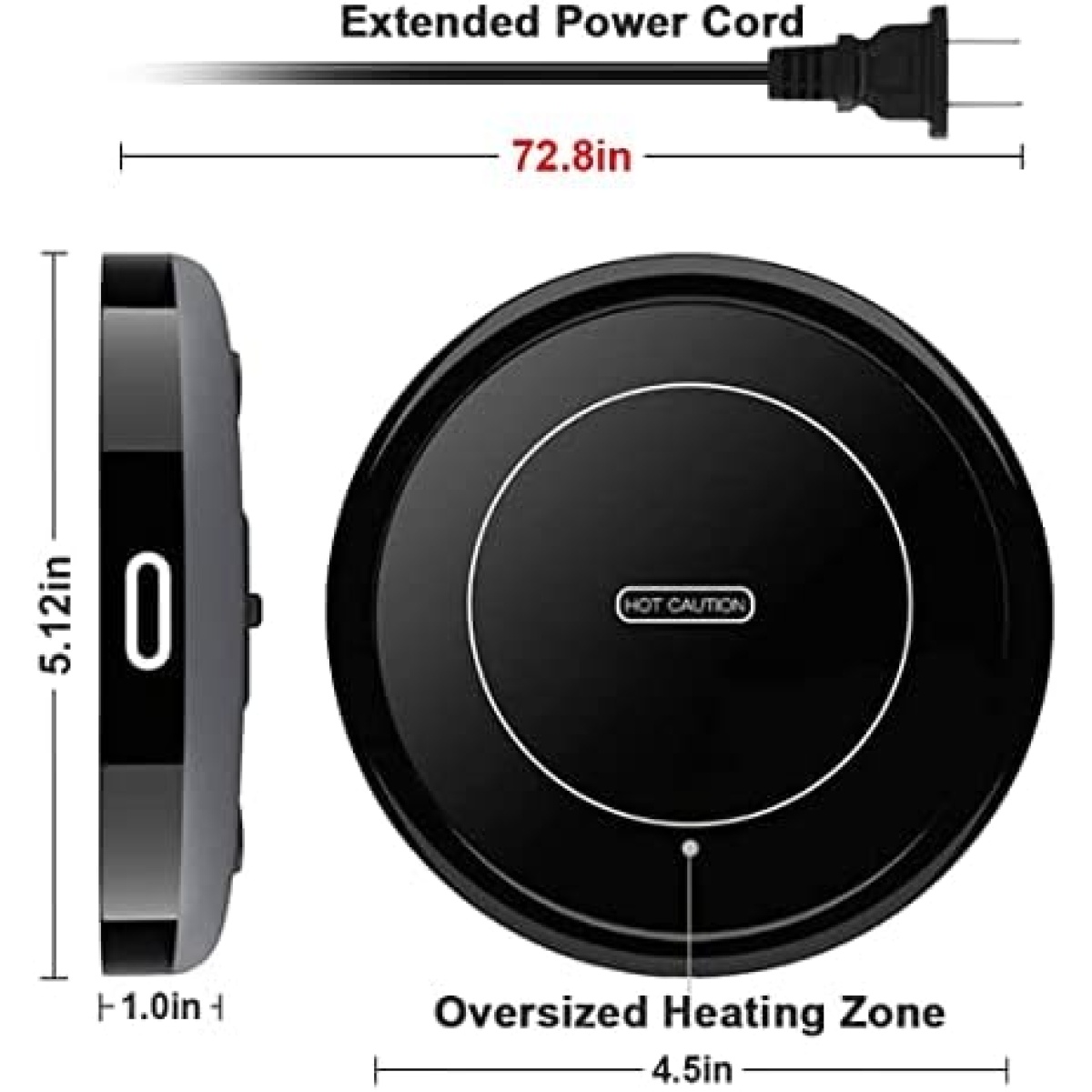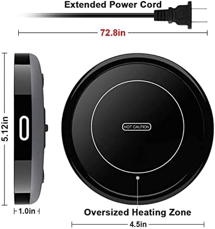 Easy to use: 19-Watt mug warmer for use with Coffee, tea, milk, hot cocoa or your candle wax, built-in gravity induction switch with indicator light, No need to turn it on/off manually, Warm your Beverage at a desirable temperature (131℉/55℃).