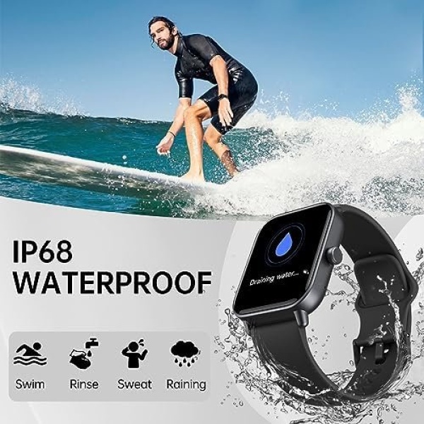 🏊‍♀️【100+ sport modes and IP68 waterproof】The fitness watch is built-in with 100+ exercise modes and IP68 waterproof function to meet the fitness needs of different people: record your fitness data of running, hiking, cycling, yoga, swimming, dancing, etc. (Do not use for baths, saunas, hot springs, etc.)