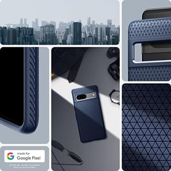 Spigen Liquid Air Pixel 7 Case (2022) – Navy Blue, Anti-Slip, Geometric Design