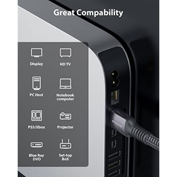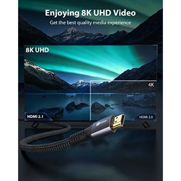 [ Universal Compatibility ]: The HDMI 2.1 Cable is compatible for your Streaming Devices, PlayStation 5 (PS5), Xbox Series X, Apple TV 4K, 2021 Macbook Pro 14/16(Apple M1 Pro/Max), NVIDIA SHIELD TV, Fire TV, Roku Ultra TV, Blu-ray players, Microsoft Xbox 1, Nintendo Switch, and other HDMI-enabled devices to your HD TV, monitors, displays or projectors.