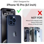 【Slim Design & Comfortable Grip】The Case for iPhone 15 Pro is designed to be slim and lightweight, making it easy to carry in your pocket and use with one hand. The processed TPU frame provides a delicate touch feeling and non-slip grip.
