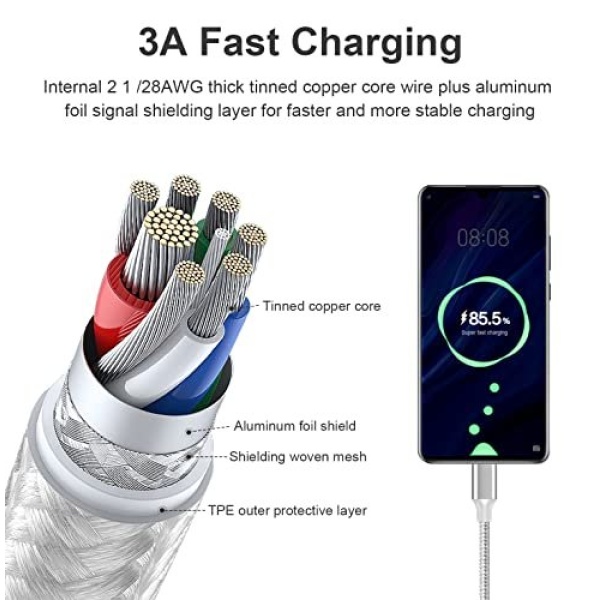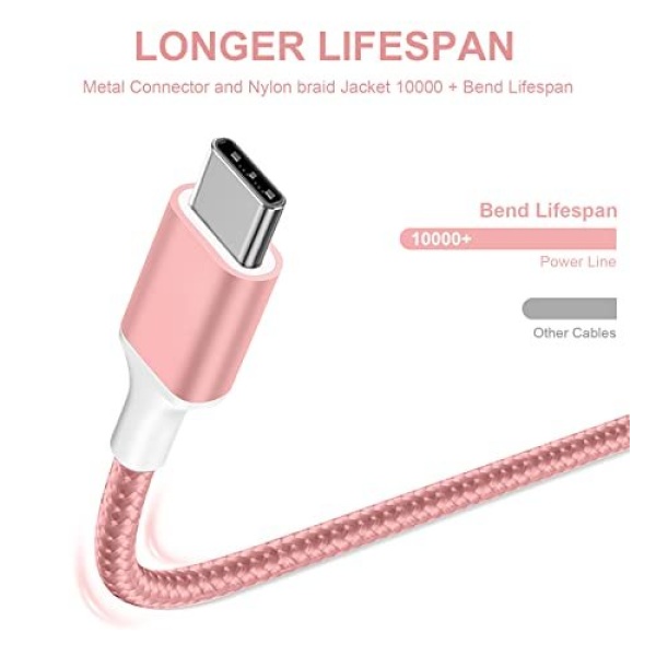 【Enhanced Durability】 Strong fiber durable material, makes tensile force increased by 150%. Can bear 10000+ bending test. Premium Aluminum housing makes the cable more durable,nylon braided type c cable adds additional durability and tangle free.