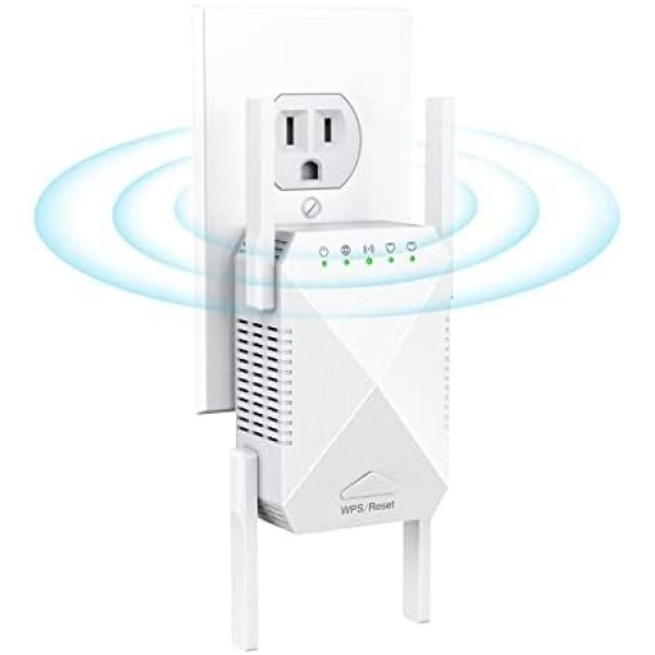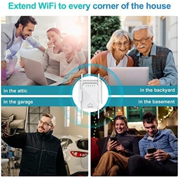 【1200Mbps Stable Signal Booster&360°Full Coverage】The internet booster WiFi repeater comes with dual band technology, provide up to 300Mbps for 2.4GHz, up to 866Mbps for 5Ghz, 360 degree high-speed connection and 4 external High-Gain antennas provide a powerful stable signal and greater penetration for happy Surfing HD video and online game.
