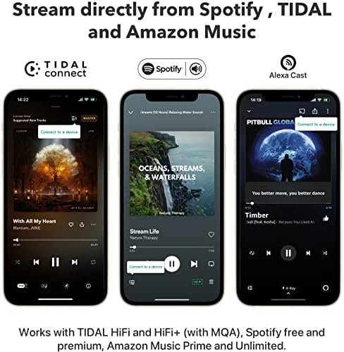 SPOTIFY CONNECT, TIDAL CONNECT AND AMAZON MUSIC CAST – Stream music directly from Spotify, TIDAL or Amazon Music app using Spotify Connect, TIDAL Connect or Alexa Cast. This offers superior audio quality and extended range compared to traditional Bluetooth or AirPlay 2 receivers, freeing your mobile device for other activities. Works for Spotify Free/Premium users, TIDAL’s HiFi and Master, Amazon Prime Music and Amazon Music Unlimited.